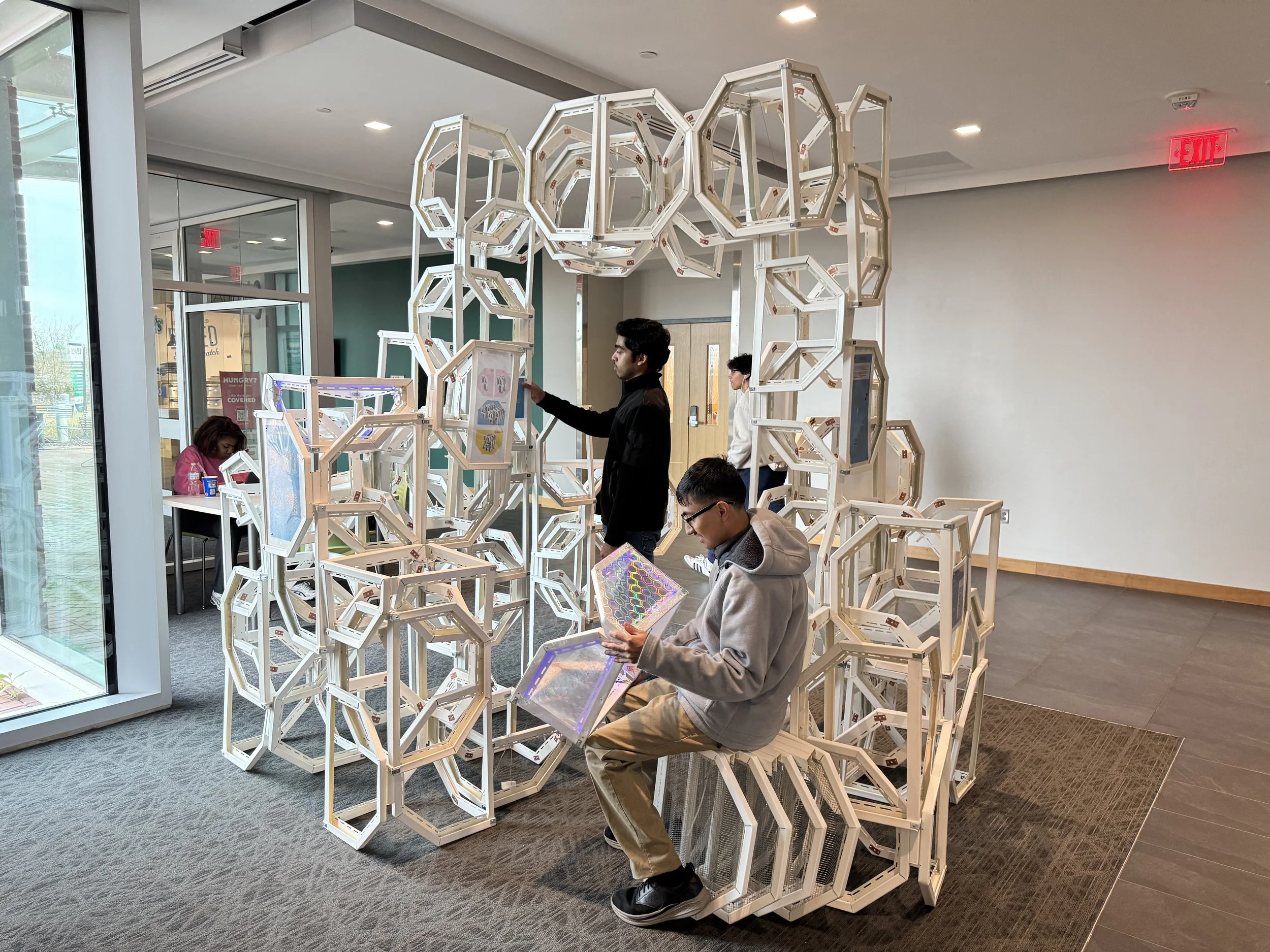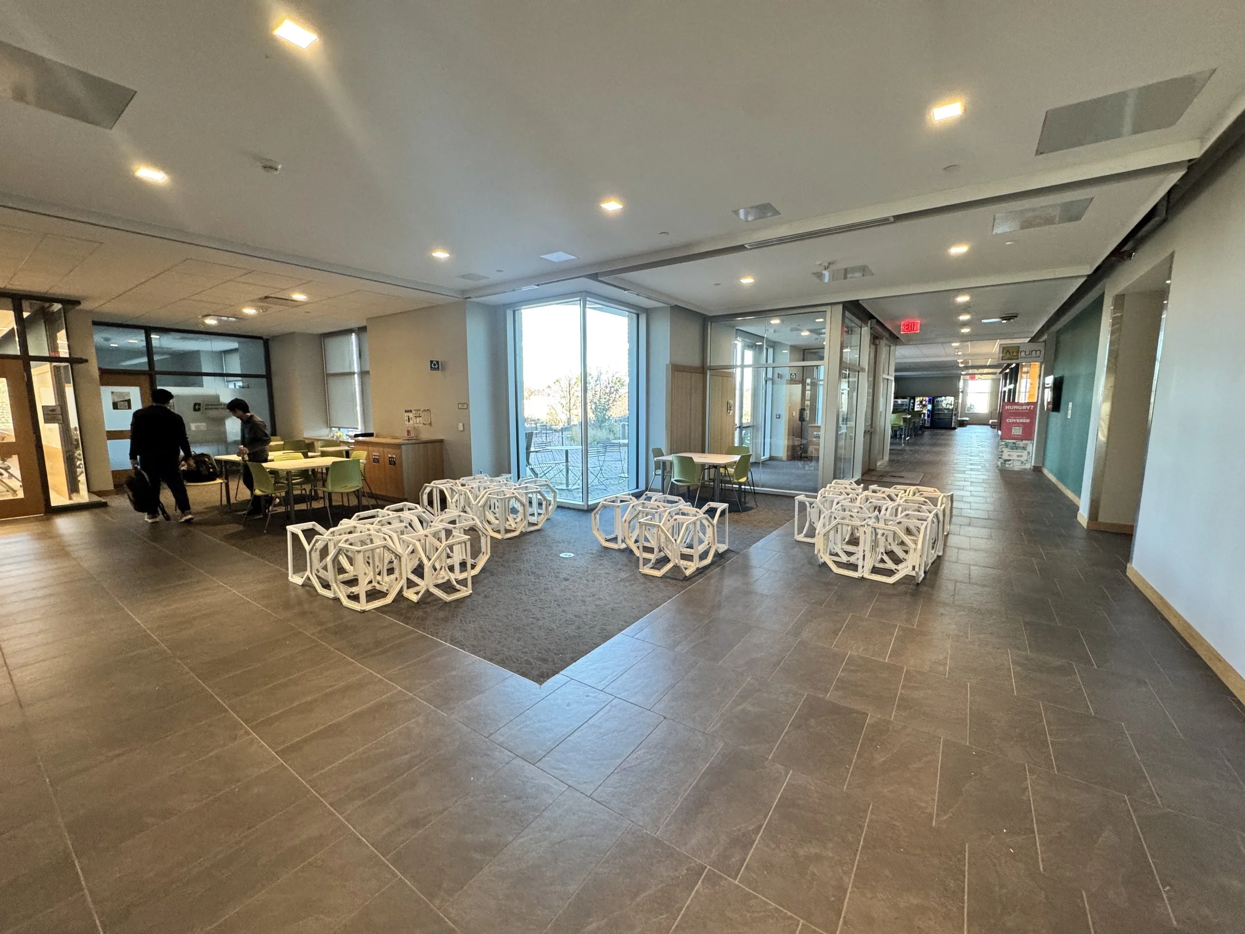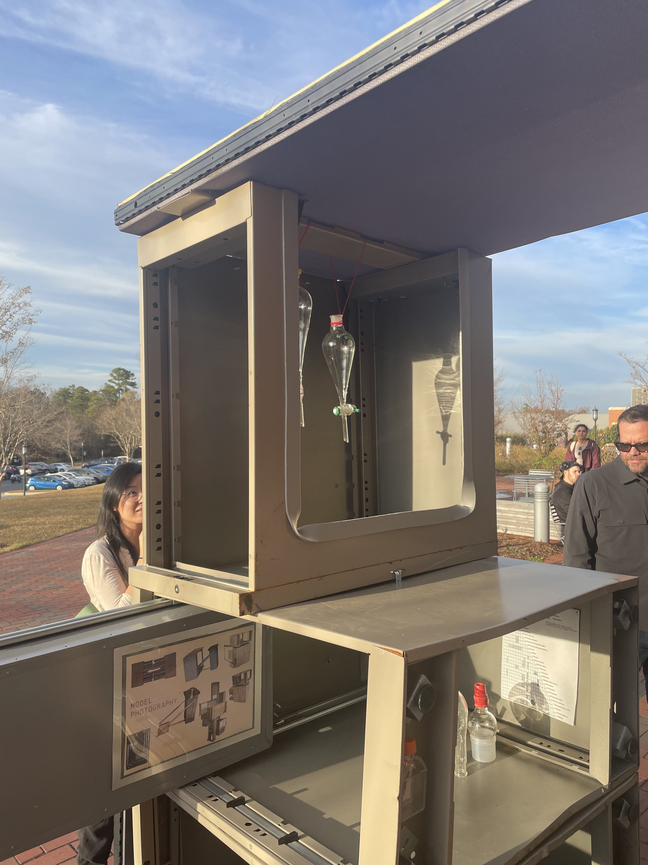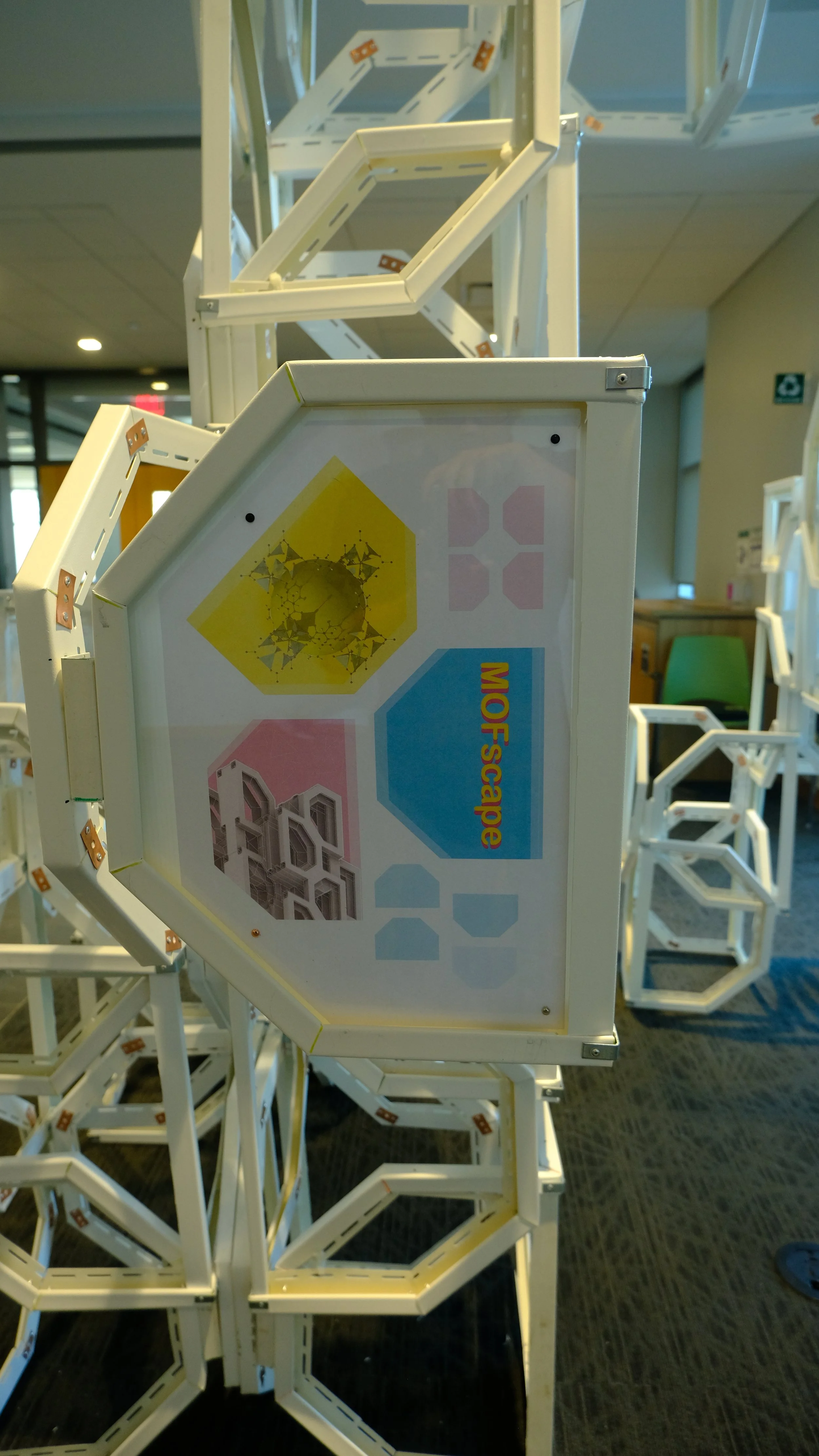 In a collaborative effort between UNC Charlotte departments, students have been exploring the scalability of principles that translate from the nanoscale of chemistry to the macro scale of architecture. As a result, five teams of architecture and chemistry students have designed competition entry proposals for a Nanoscale Science Pop-Up Museum and built full-scale components of their proposals at the Science Building. The installations are based on the design, synthesis, and properties of metal-organic frameworks (MOFs). The projects were on display for viewing and voting on Monday, May 2nd, 2022. The winning project will be built during the 2022-2023 academic year and travel to local K-12 (CMS) schools and community events, transforming the museum from a fixed institution into a transportable community-driven and event-driven organization, democratizing museum attendance by targeting demographic groups less likely to frequent them. The mobile museum will create an atmosphere to enliven urban gatherings and local school events alike.